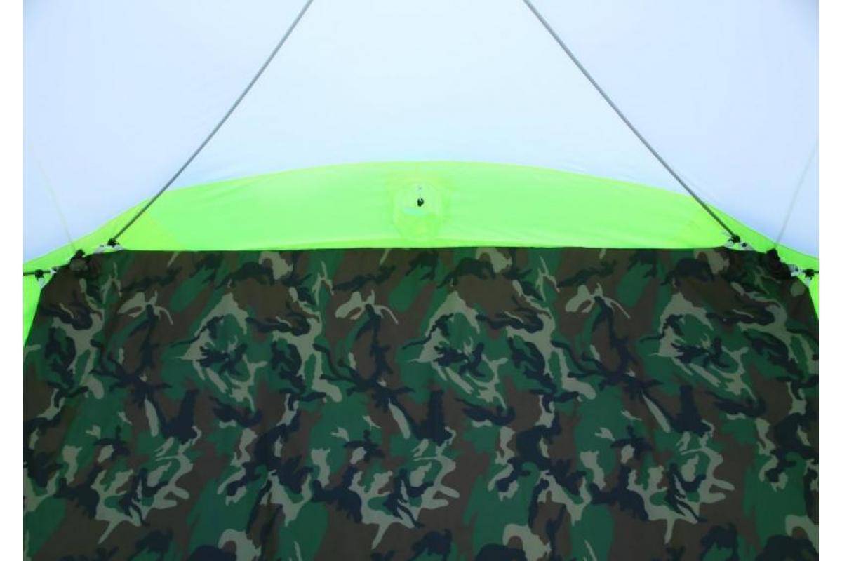Имеет дополнительные 4 оттяжки для крепления на льду.
