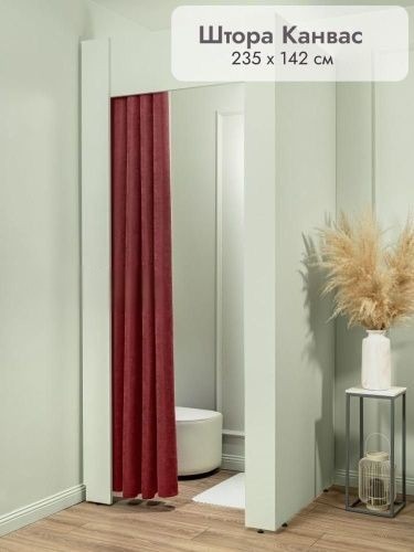 Штора в примерочную и комнату на люверсах Канвас цвет бордовый, 1 шт